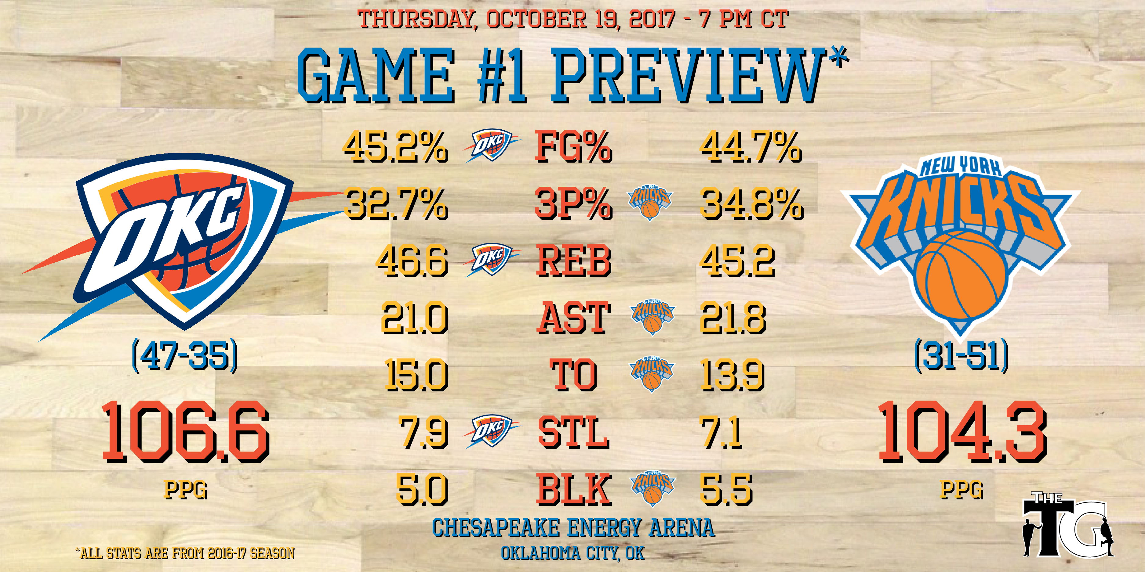 The Thunder finished preseason action with a 3-2 record, while the Knicks went 0-5, and most of their losses were not even close. Oklahoma City is favored to win tonight, which makes sense considering the Knicks are realistically nowhere near the Thunder in terms of talent level. Tonight’s game will be a good preview of how well this new Thunder squad can play together, and some younger guys could get extended minutes if all goes well.