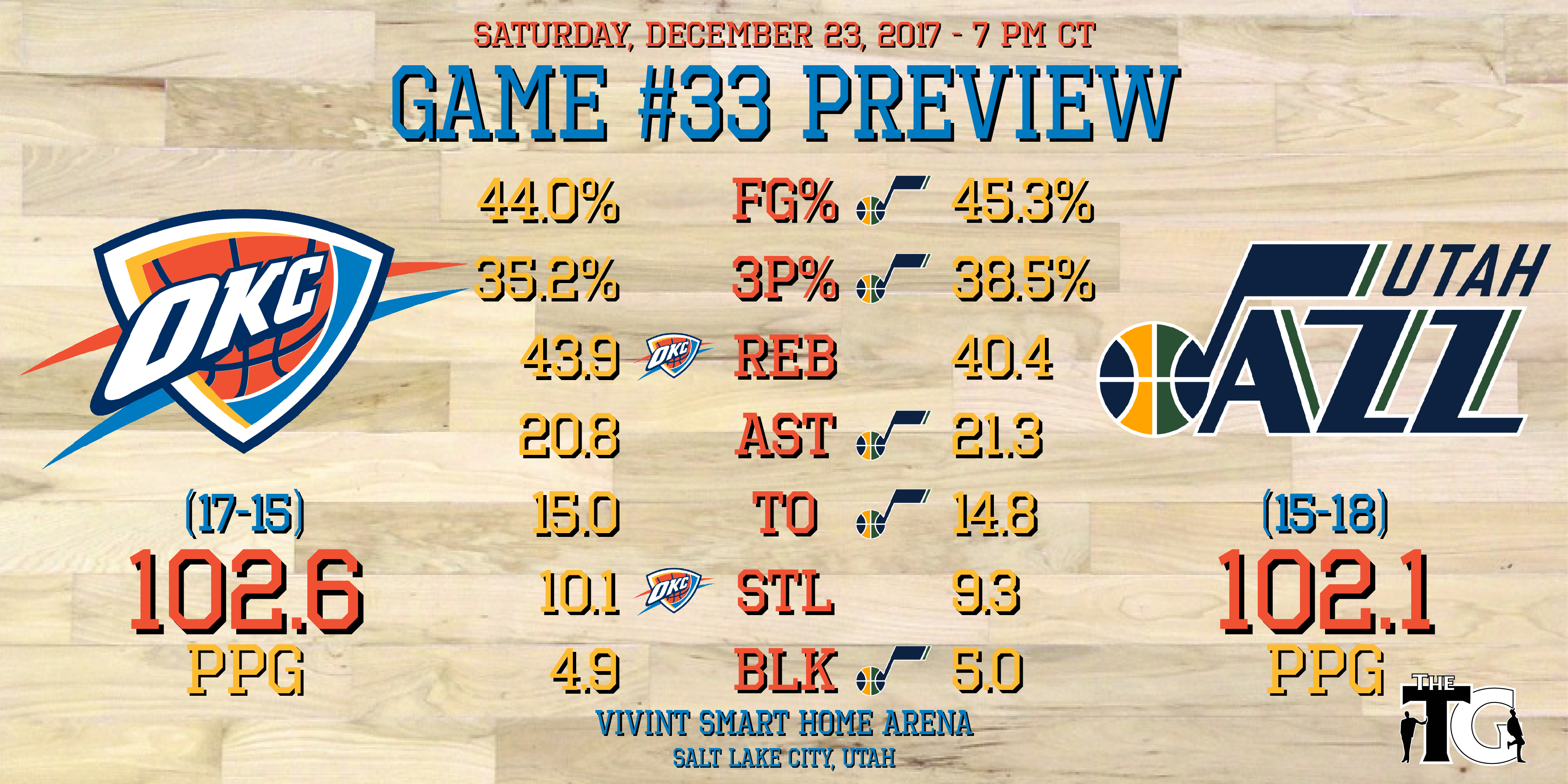 - Oklahoma City is 7-3 in the last ten games, while Utah is 3-7.
