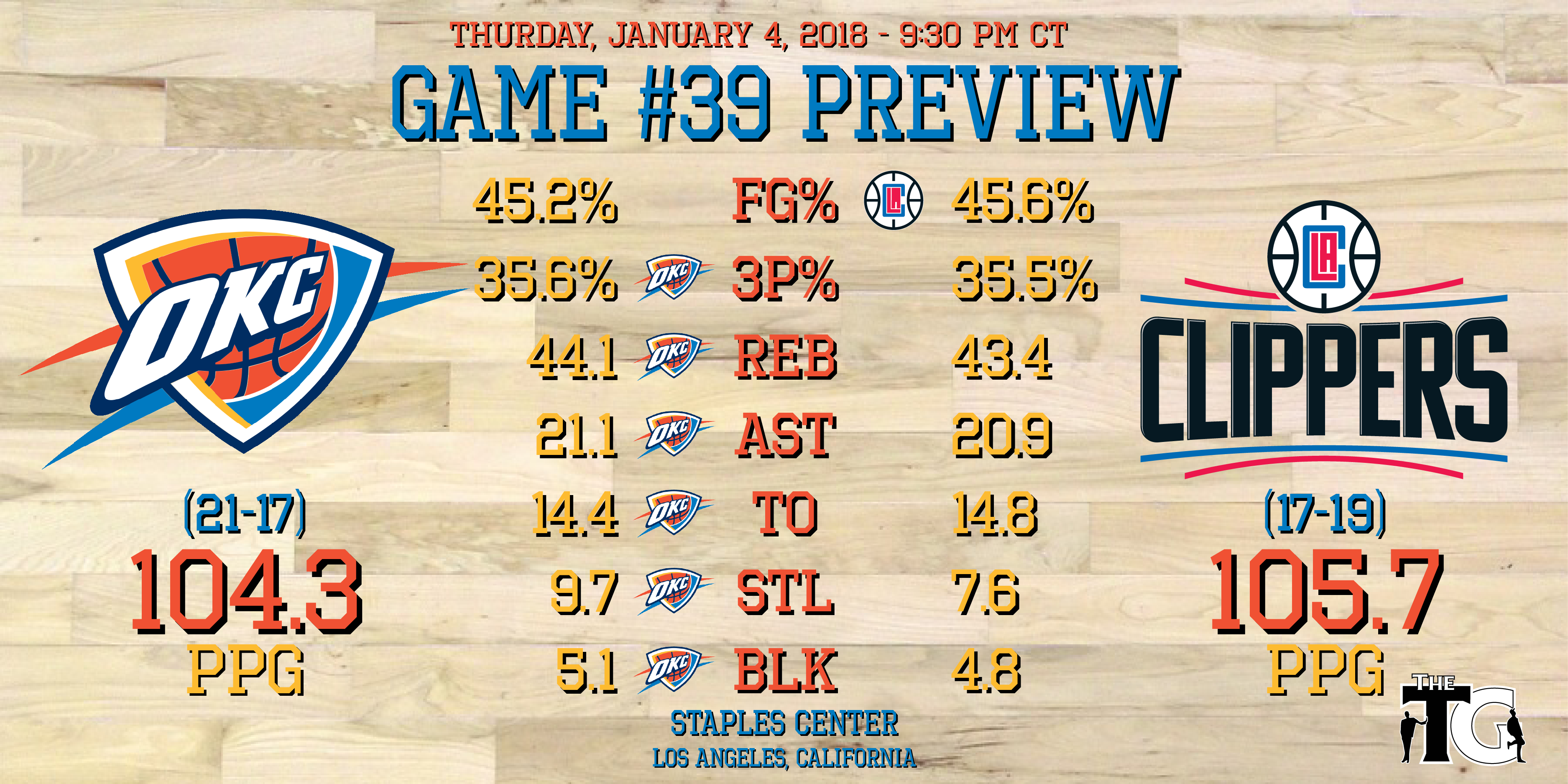 - The Thunder has won 5 of the last 7 matchups with the Clippers.