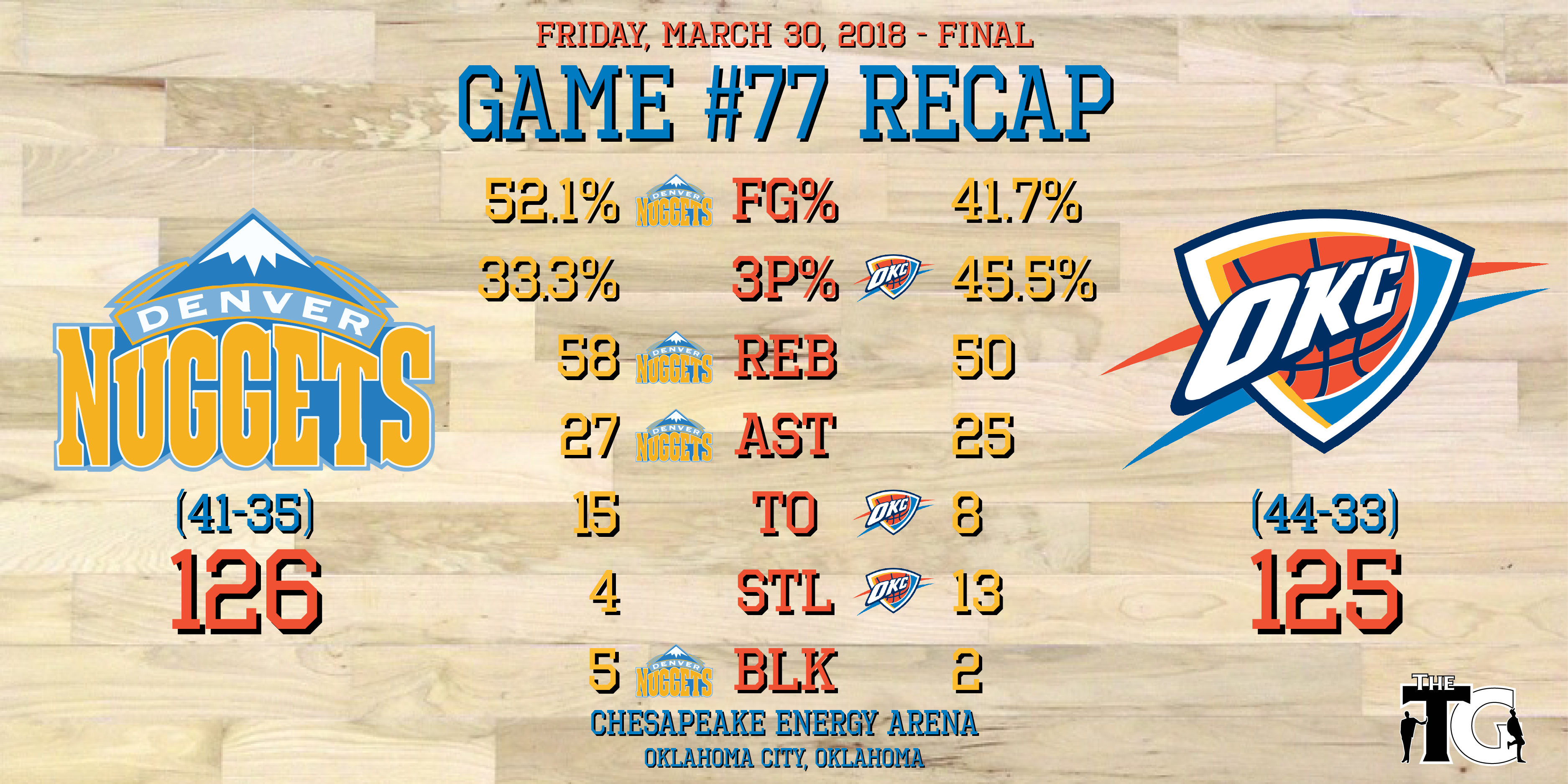 For the third time this week, the Thunder lost a desperate game in a desperate situation on Friday night as the Nuggets stole a 126-125 win in Oklahoma City.