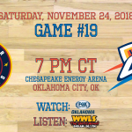 Tonight’s matchup is the first divisional matchup of the season for the Thunder, and considering how close the Western Conference was at season’s end a year ago, these games are important as they typically are determining factors for playoff seeding. The Thunder is still dealing with a number of injuries, but so are the Nuggets. Oklahoma City will need some younger players to step up and fill the voids where necessary.