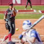 The junior pitcher posted a 1.27 ERA against the 11th ranked Texas Longhorns and earned two wins in Oklahoma’s three-game sweep. In Thursday’s opener she fanned ten batters which marked the sixth time this season she’s recorded ten or more strikeouts. It was also her sixth complete-game performance of the season, and the highest number of strikeouts for the Longhorns on the season.