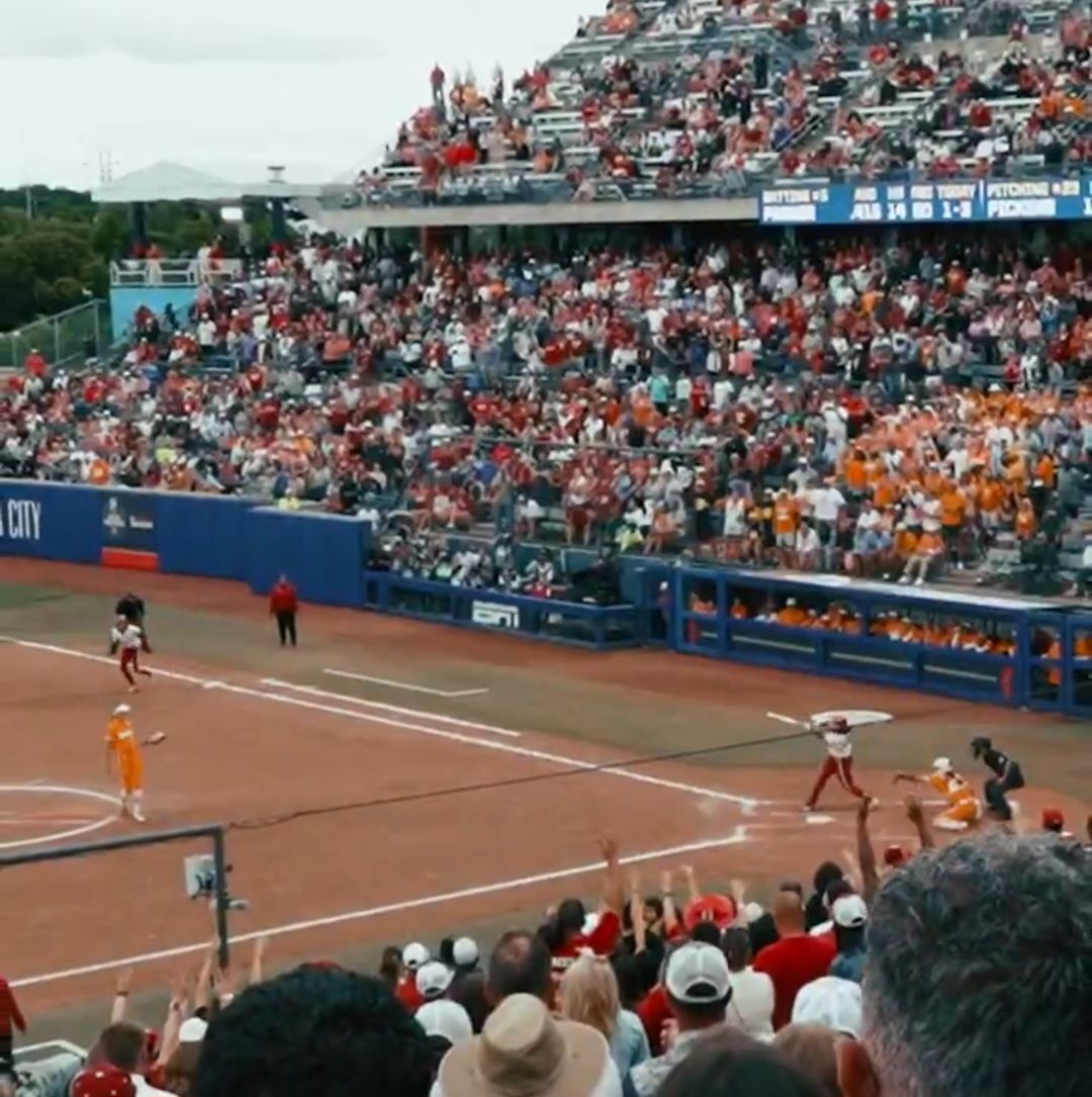 Trailing by two runs with two outs in the bottom of the seventh, it was Ella Parker — the Sooner sophomore phenom turned postseason superstar — who launched a three-run, walk-off home run to straightaway center field, lifting No. 2 Oklahoma to a stunning 4-3 win over No. 7 Tennessee in front of 11,805 roaring fans at Devon Park.