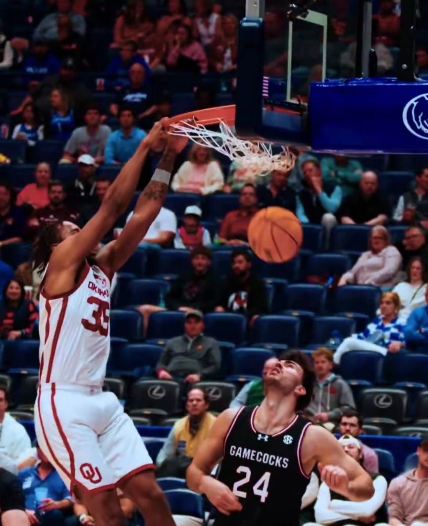 The Sooners’ perimeter shots weren’t falling, their defensive rotations were a step slow, and the Gamecocks were dictating tempo. But one player refused to let the deficit spiral further.